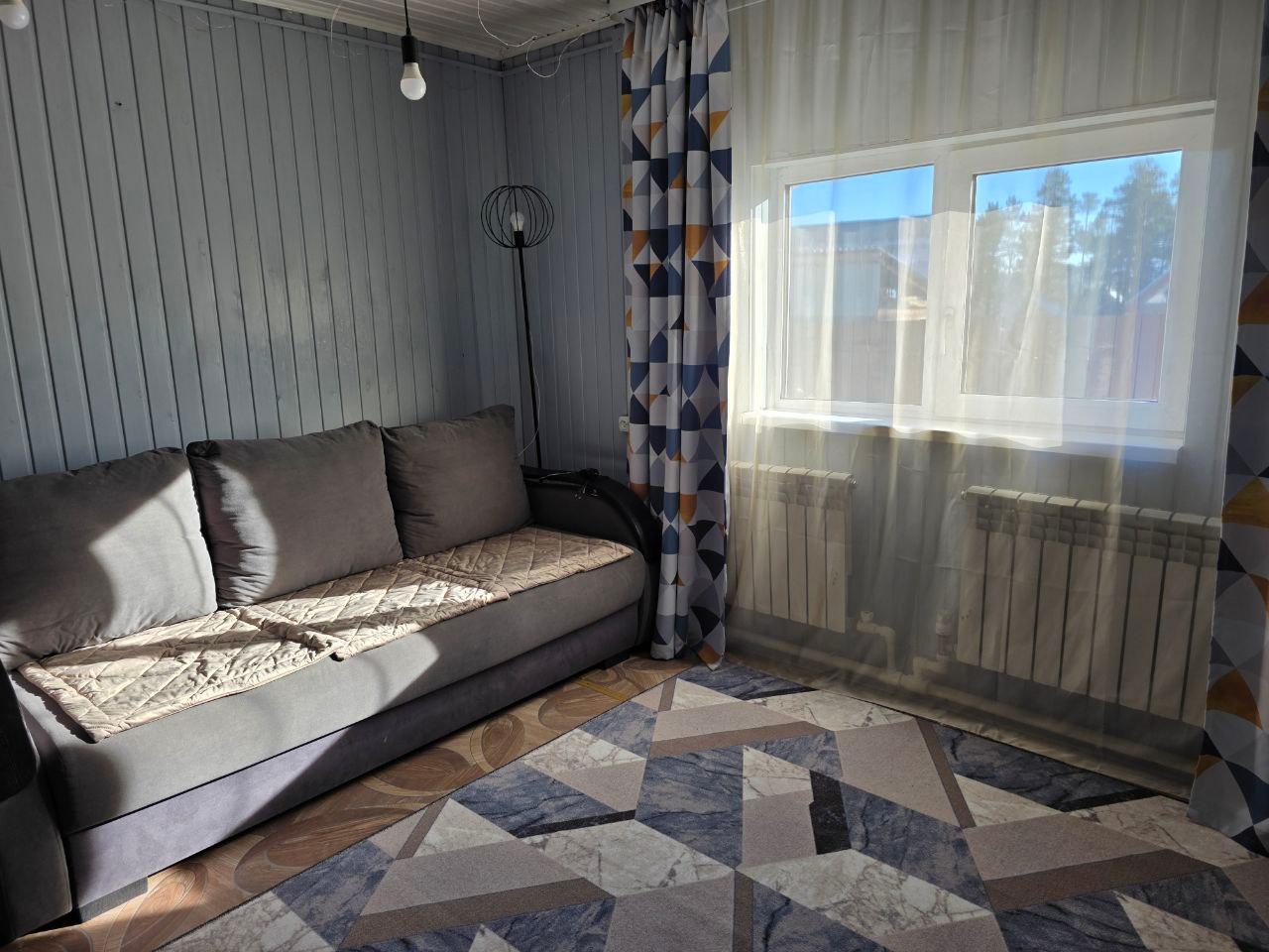 Домик выполнен из экологически чистых материалов, что создает неповторимый микроклимат внутри помещения. Большая гостиная станет любимым местом для вечерних посиделок и душевных разговоров. Мягкая мебель и теплый свет располагают к отдыху и расслаблению.